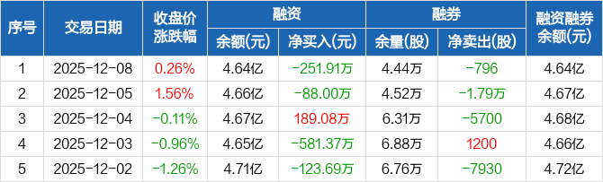 金宏气体:融资净偿还251.91万元,融资余额4.64亿元(12-08)