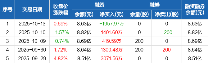 赛诺医疗:融资净偿还1957.97万元,融资余额8.63亿元(10-13)
