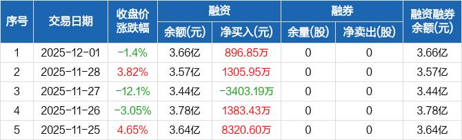 品茗科技:融资净买入896.85万元,融资余额3.66亿元(12-01)