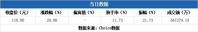 上交所2025年11月26日交易公开信息显示,东芯股份因属于日涨幅达到15%的前5只证券而登上龙虎榜。东芯股份当日报收118.80元,涨跌幅为20.00%,换手率11.73%,振幅21.73%,成交额56.13亿元。