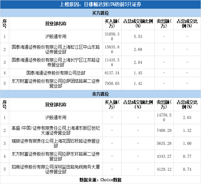 沪股通现身龙虎榜,东芯股份涨停(11-26)