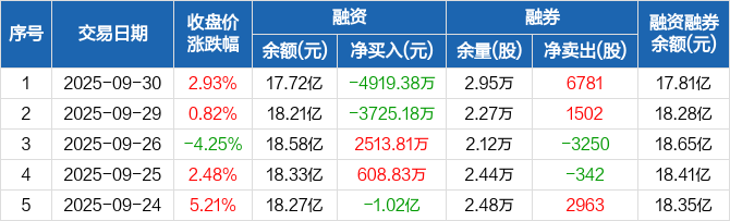 金山办公:融资净偿还4919.38万元,融资余额17.72亿元(09-30)