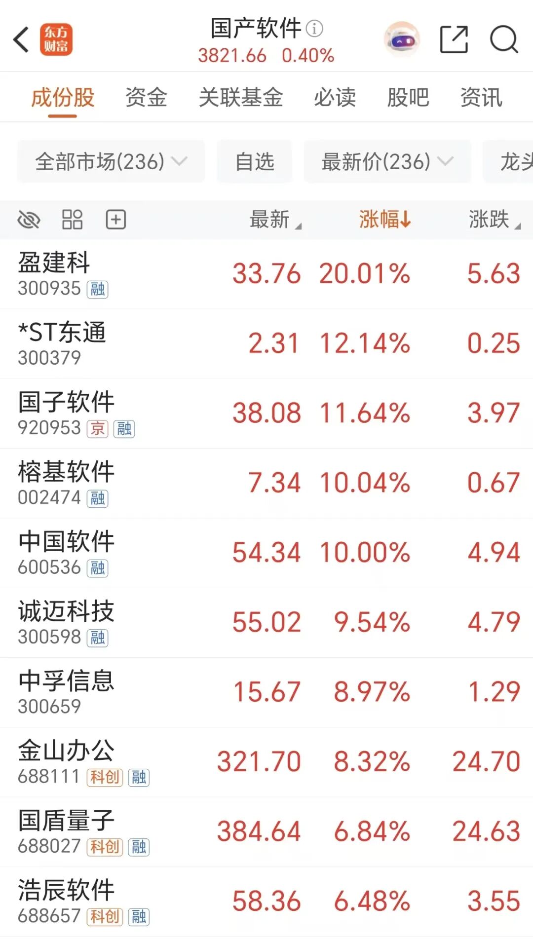 周一A股震荡回升,自主可控成为市场的重要主线之一,其中软件股表现强势,盈建科20CM涨停,金山办公一度大涨超18%,收盘涨超8%,榕基软件、中国软件涨停,诚迈科技、中孚信息等强势跟涨。
