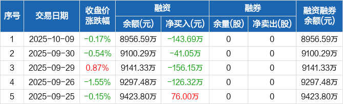联测科技:连续4日融资净偿还累计467.21万元(10-09)