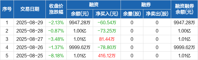 思林杰:融资净偿还60.54万元,融资余额9947.28万元(08-29)