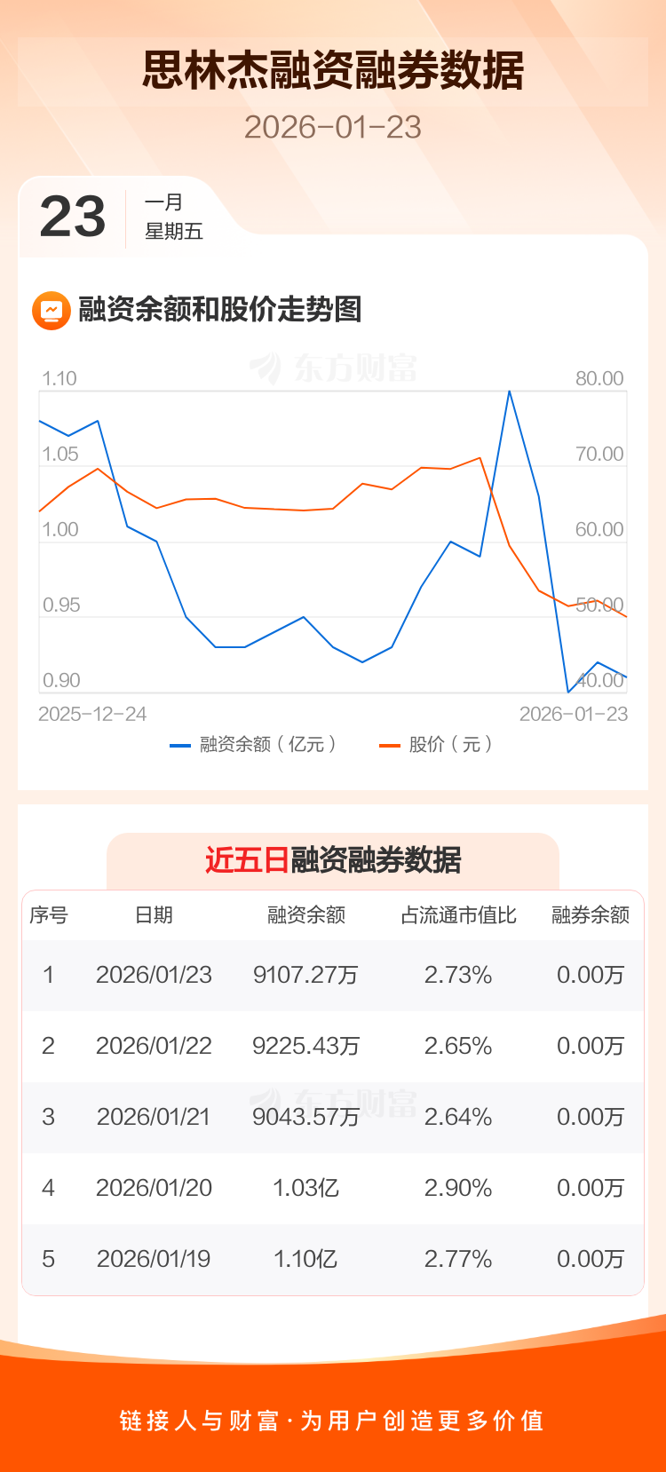 交易所最新数据显示,思林杰于2026年1月23日获融资买入2208.43万元,融资偿还2326.60万元,当日融资净偿还118.17万元。目前,该股融资余额9107.27万,占流通市值比例为2.73%。