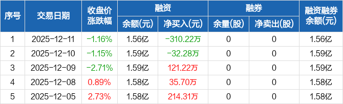 普元信息:融资净偿还310.22万元,融资余额1.56亿元(12-11)