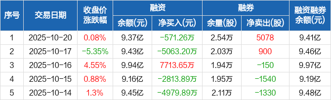 聚辰股份:融资净偿还571.26万元,融资余额9.37亿元(10-20)