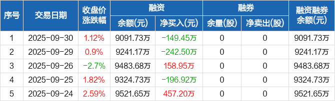安达智能:融资净偿还149.45万元,融资余额9091.73万元(09-30)