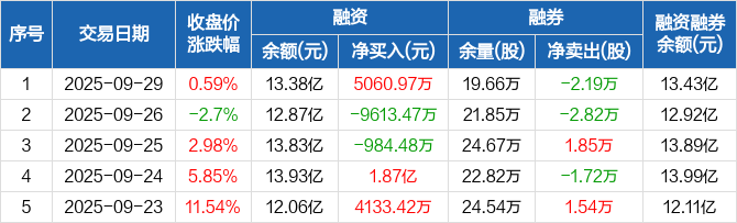 沪硅产业:融资净买入5060.97万元,融资余额13.38亿元(09-29)