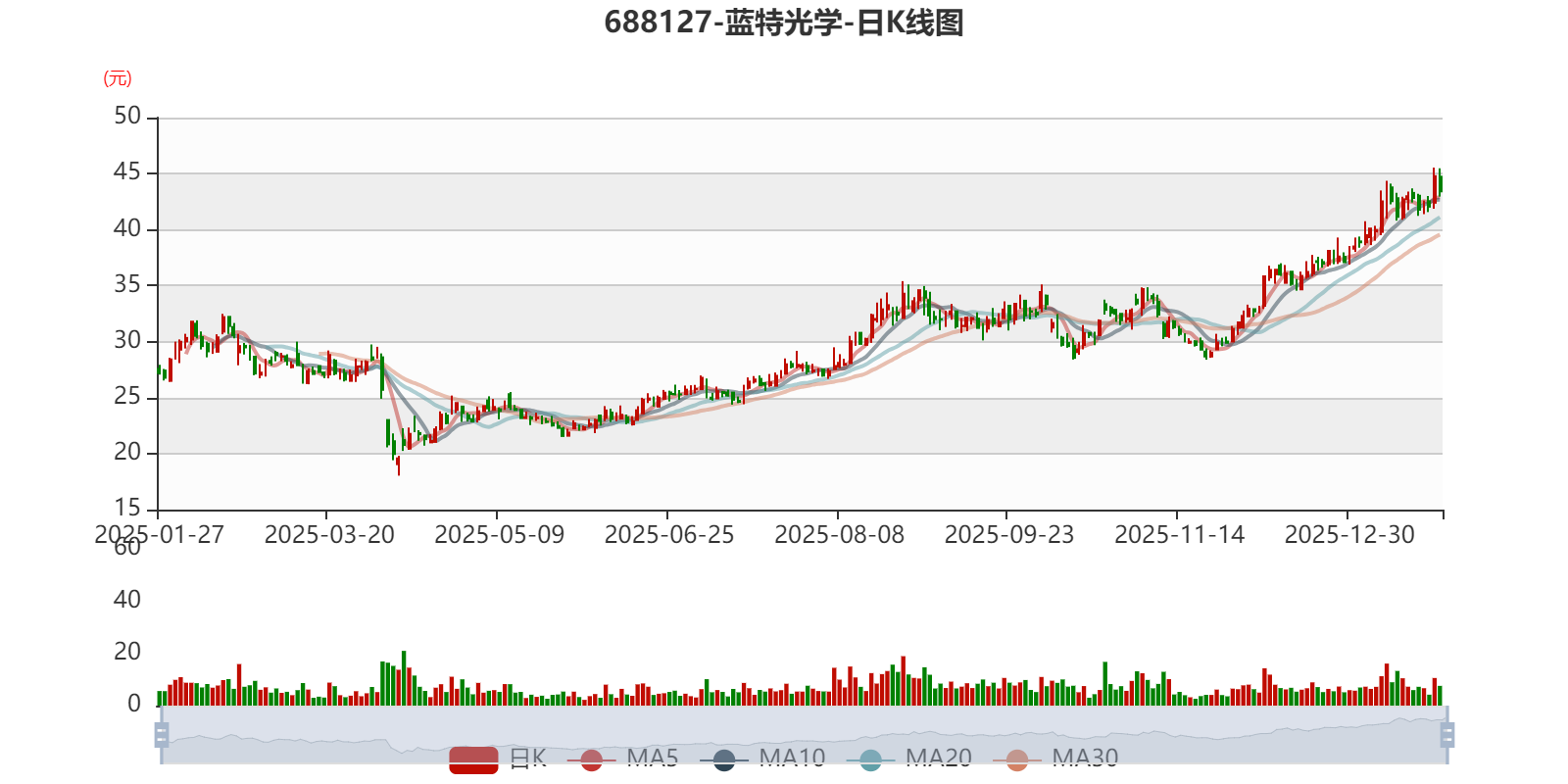 中证智能财讯蓝特光学(688127)1月26日晚间披露2025年度业绩预告,预计2025年归母净利润3.75亿元至4亿元,同比增长70.04%-81.38%;扣非净利润预计3.68亿元至3.93亿元,同比增长70.89%-82.5%。以1月26日收盘价计算,蓝特光学目前市盈率(TTM)约为44.06倍-47倍,市净率(LF)约8.61倍,市销率(TTM)约13.57倍。