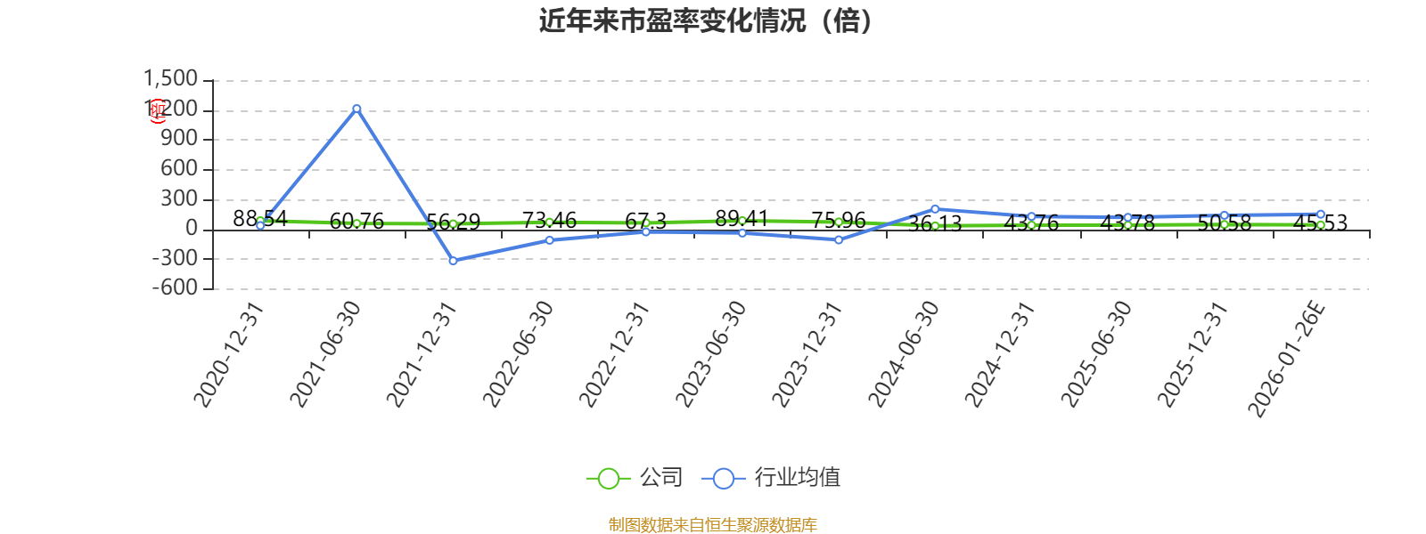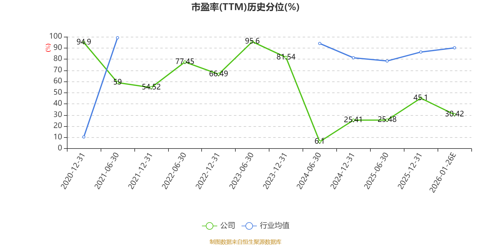 市盈率、市净率为负时,不显示当期分位数,会导致折线图中断。