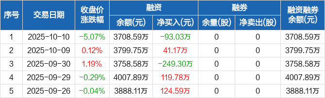 晶华微:融资净偿还93.03万元,融资余额3708.59万元(10-10)