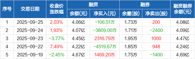 皓元医药:融资净偿还106.51万元,融资余额4.06亿元(09-25)