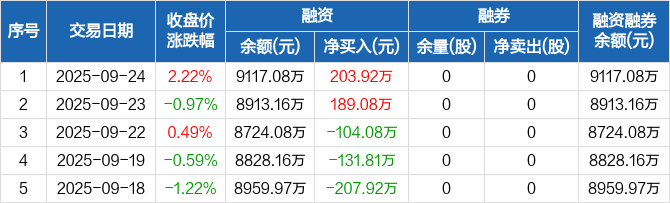 邦彦技术:融资净买入203.92万元,融资余额9117.08万元(09-24)