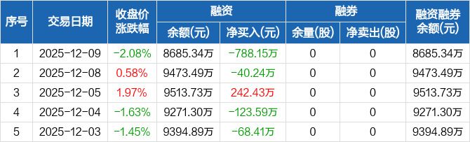 邦彦技术:融资净偿还788.15万元,融资余额8685.34万元(12-09)
