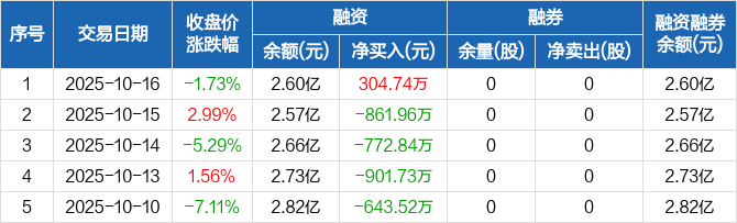 利扬芯片:融资净买入304.74万元,融资余额2.6亿元(10-16)