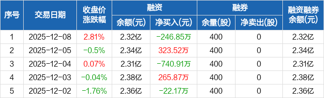 清溢光电:融资净偿还246.85万元,融资余额2.32亿元(12-08)