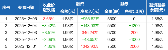 芳源股份:融资净偿还956.82万元,融资余额1.88亿元(12-05)