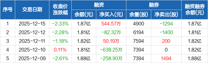 芳源股份:融资净买入544.57万元,融资余额1.87亿元(12-15)