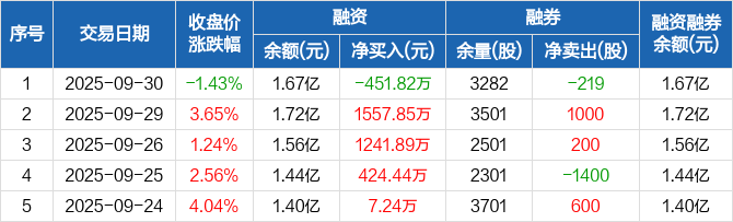 麒麟信安:融资净偿还451.82万元,融资余额1.67亿元(09-30)