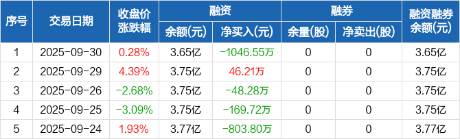 XD先惠技:融资净偿还1046.55万元,融资余额3.65亿元(09-30)