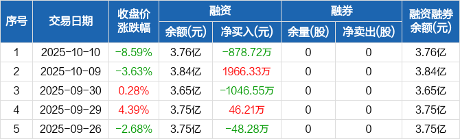 先惠技术:融资净偿还878.72万元,融资余额3.76亿元(10-10)