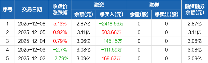 先惠技术:融资净偿还2418.56万元,融资余额2.87亿元(12-08)