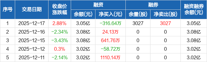 先惠技术:融资净偿还316.64万元,融资余额3.05亿元(12-17)