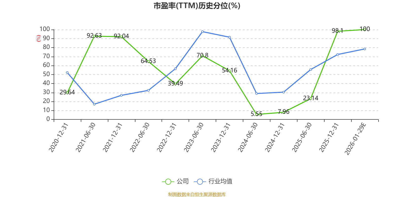以本次披露业绩预告均值计算,公司近年市盈率(TTM)图如下所示: