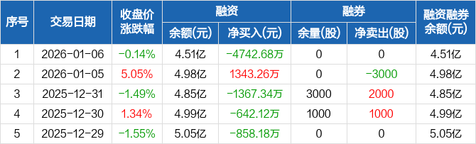 有方科技:融资净偿还4742.68万元,融资余额4.51亿元(01-06)