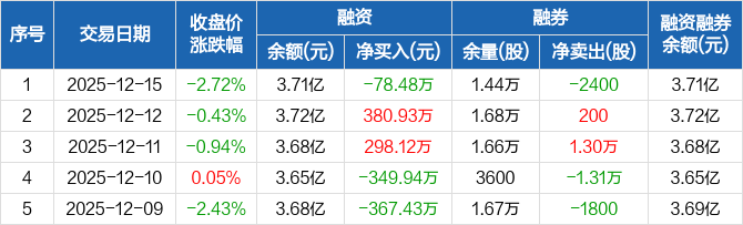 埃夫特:融资净偿还78.48万元,融资余额3.71亿元(12-15)