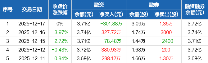 埃夫特:融资净偿还301.88万元,融资余额3.71亿元(12-17)