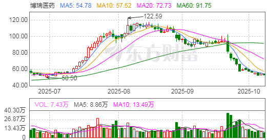 二级市场上,最近三个月内公司股价大幅波动,犹如坐“过山车”。今年7月,随着创新药概念升温,股价一个月内由50元一度涨超122元。8月中旬后股价持续回落,截至发稿,股价53.31元/股,较高点跌超50%。