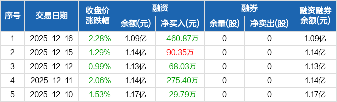 德龙激光:融资净偿还460.87万元,融资余额1.09亿元(12-16)