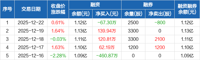 德龙激光:融资净偿还67.3万元,融资余额1.12亿元(12-22)