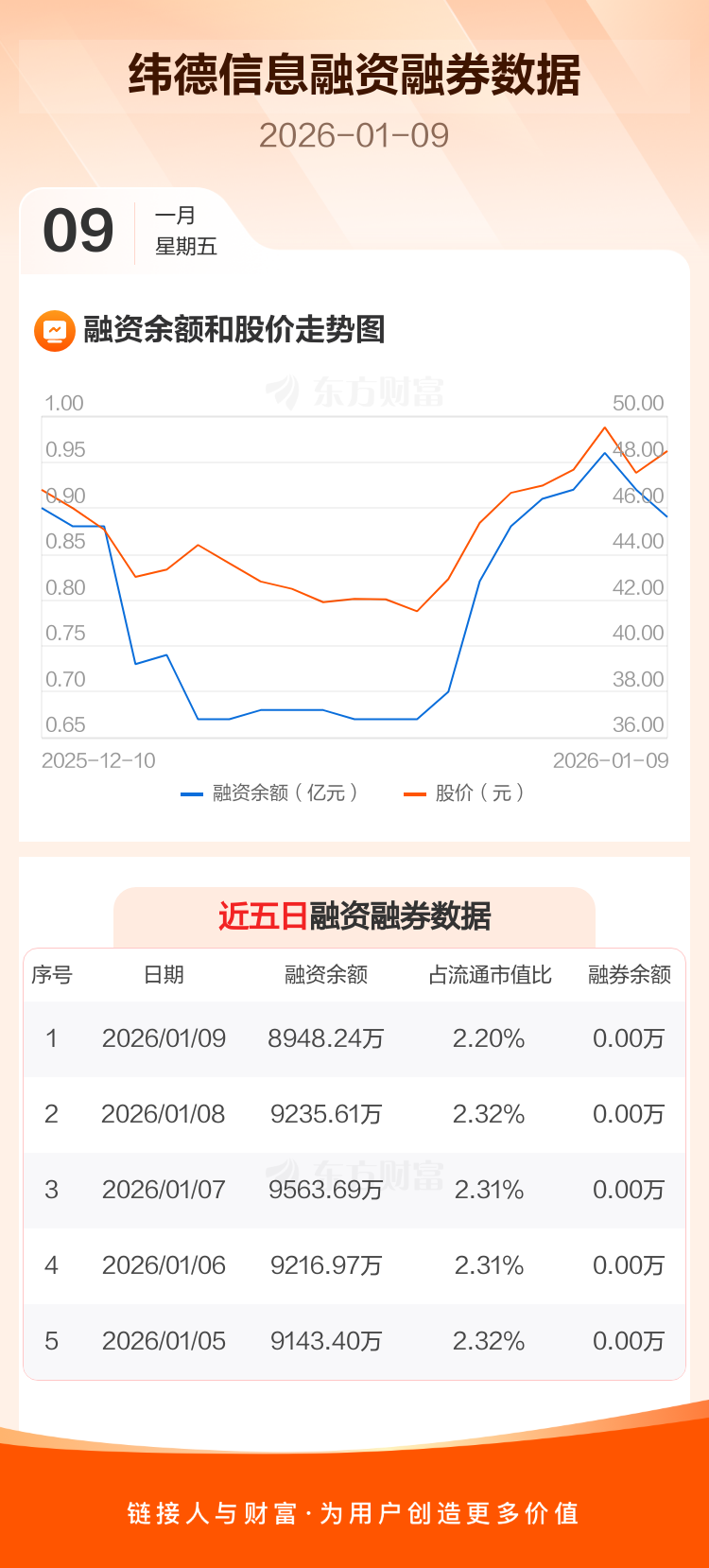 交易所最新数据显示,纬德信息于2026年1月9日获融资买入746.46万元,融资偿还1033.83万元,当日融资净偿还287.37万元。目前,该股融资余额8948.24万,占流通市值比例为2.20%。