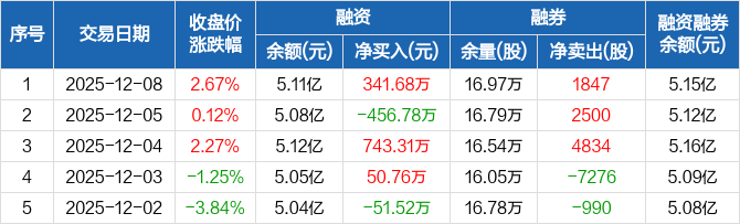 燕东微:融资净买入341.68万元,融资余额5.11亿元(12-08)