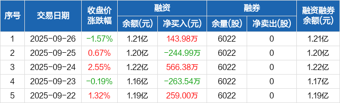 希荻微:融资净买入143.98万元,融资余额1.21亿元(09-26)
