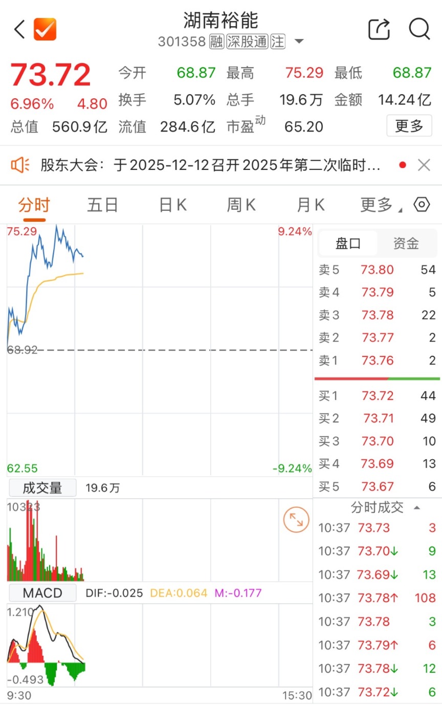 湖南裕能开盘后涨幅逐渐拉升至9.24%,截至发稿涨6.96%。