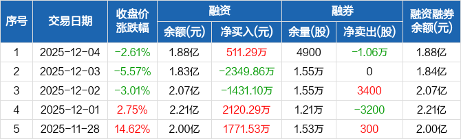 希荻微:融资净买入511.29万元,融资余额1.88亿元(12-04)