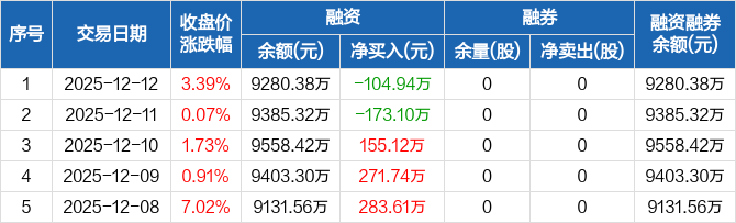 高凌信息:融资净偿还104.94万元,融资余额9280.38万元(12-12)