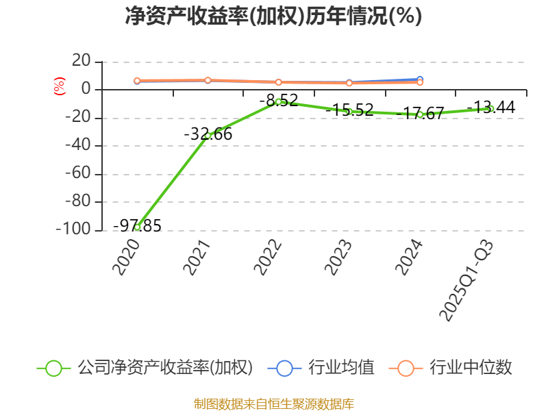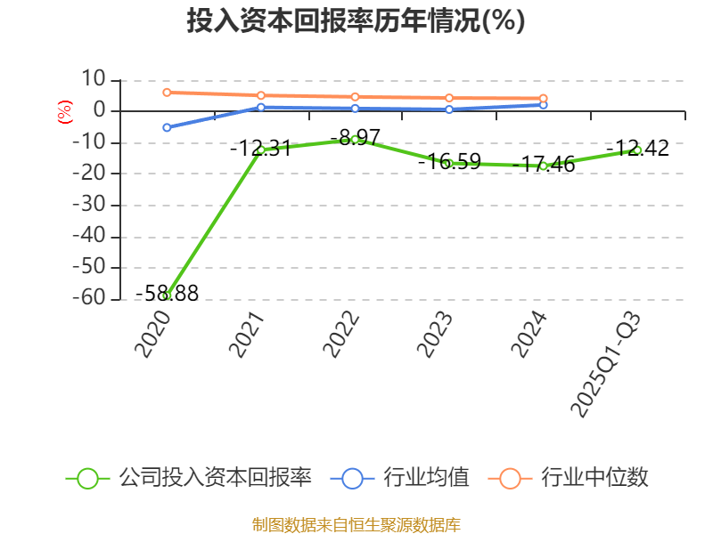盈利能力方面, 2025年前三季度公司加权平均净资产收益率为-13.44%,同比下降1.32个百分点。公司2025年前三季度投入资本回报率为-12.42%,较上年同期下降0.18个百分点。