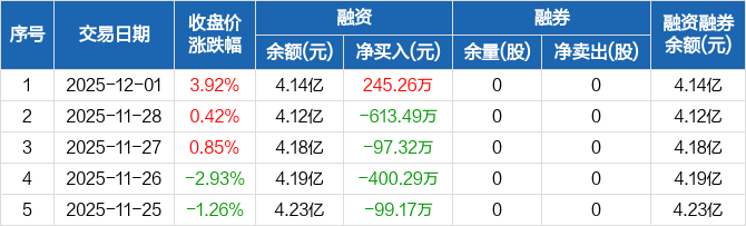 八亿时空:融资净买入245.26万元,融资余额4.14亿元(12-01)