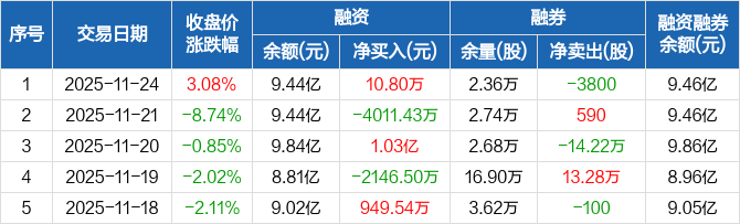 生益电子:融资净买入10.8万元,融资余额9.44亿元(11-24)