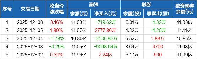 生益电子:融资净偿还719.62万元,融资余额11亿元(12-08)