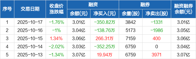 康希诺:融资净偿还350.82万元,融资余额3.01亿元(10-17)