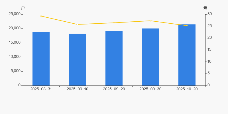 截至2025年10月20日,公司最新总股本为2.8亿股,且均为流通股。户均持有流通股数量由上期的1.4万股下降至1.31万股,户均流通市值32.92万元。