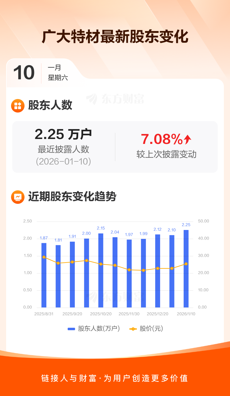广大特材:截至1月10日最新股东户数2.25万户,较上期增加7.08%
