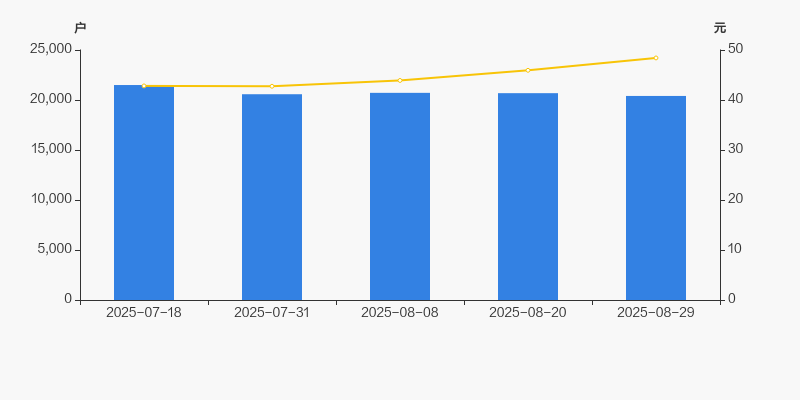 2025年7月18日至今,公司股东户数有所下降,区间跌幅为5.08%。2025年7月18日至2025年8月29日区间股价上涨13.06%。